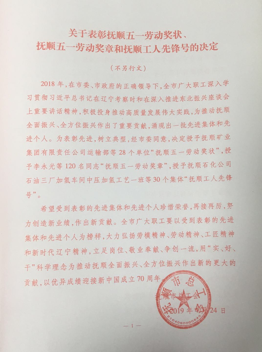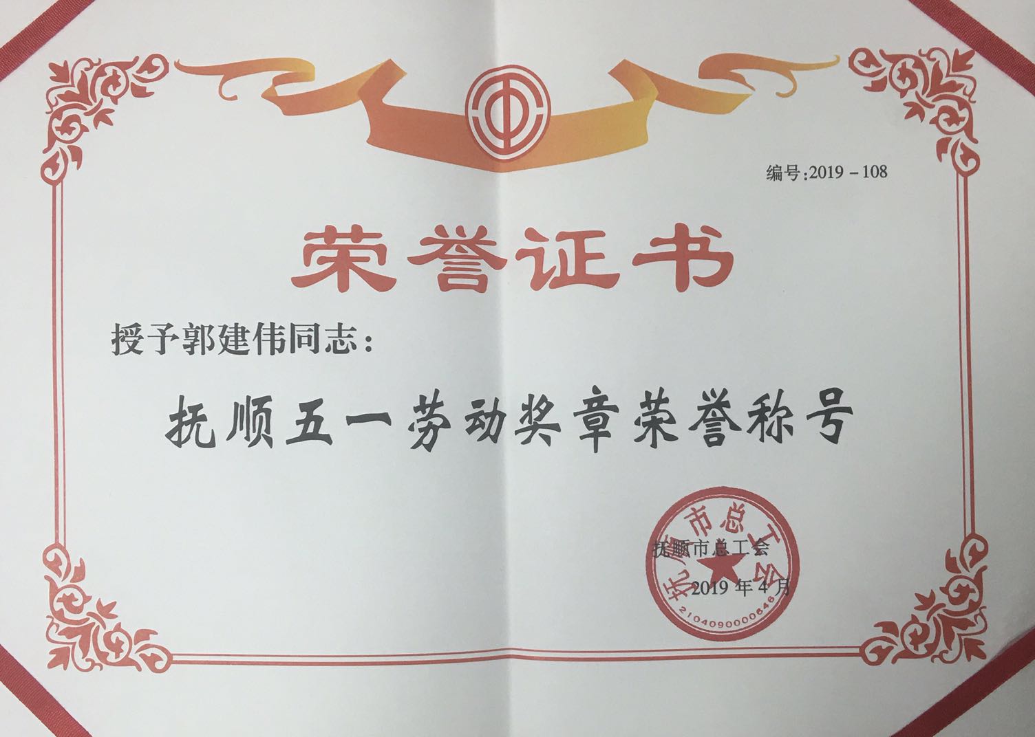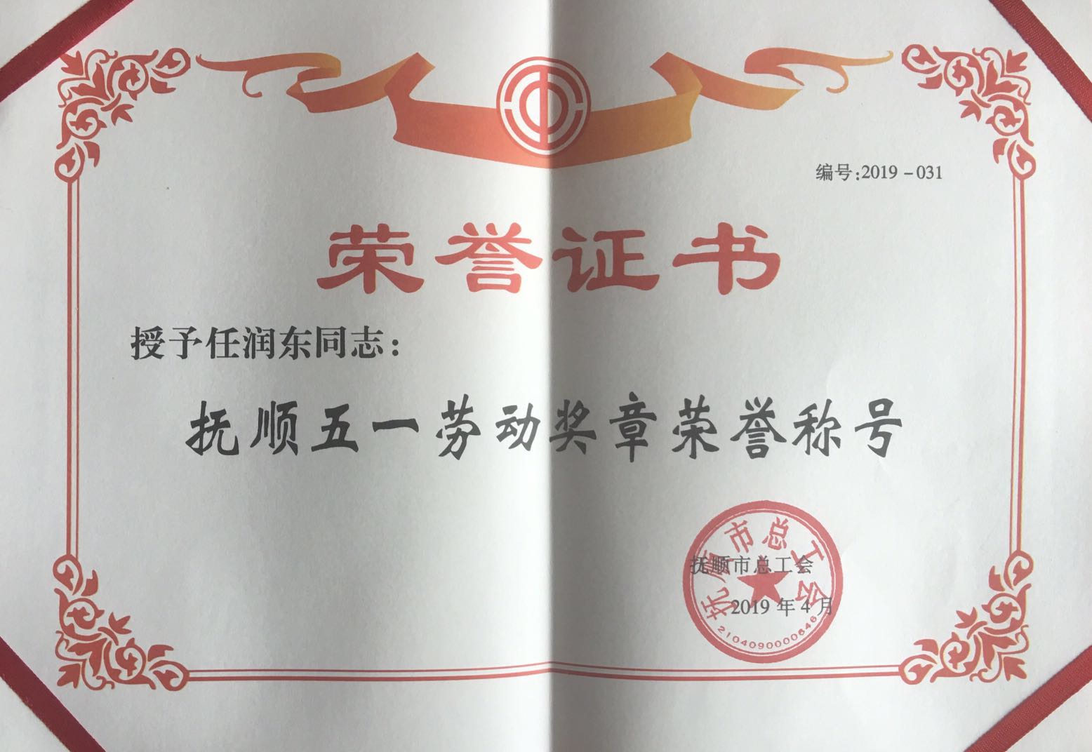 熱烈慶祝我單位任潤東、郭建偉兩位同志榮獲“撫順五一勞動(dòng)獎(jiǎng)?wù)隆睒s譽(yù)稱號