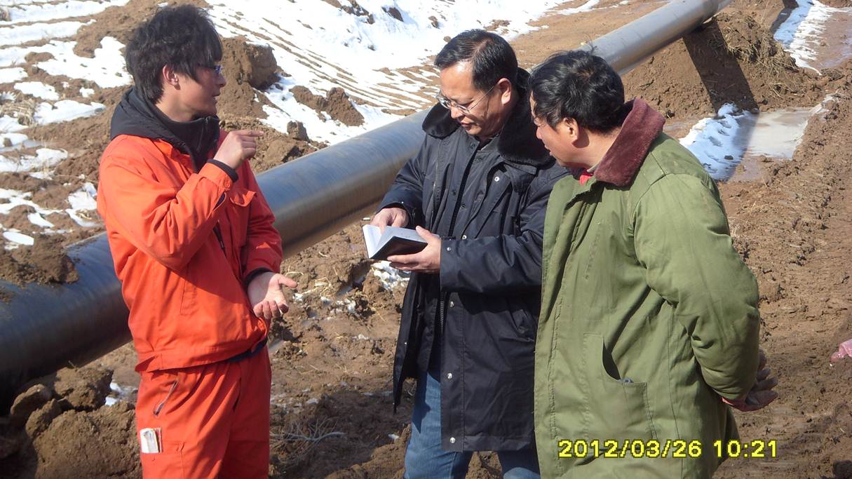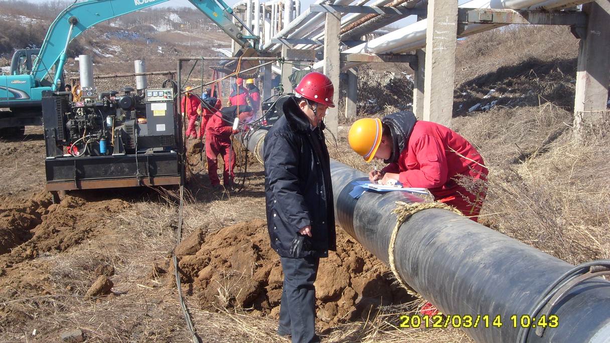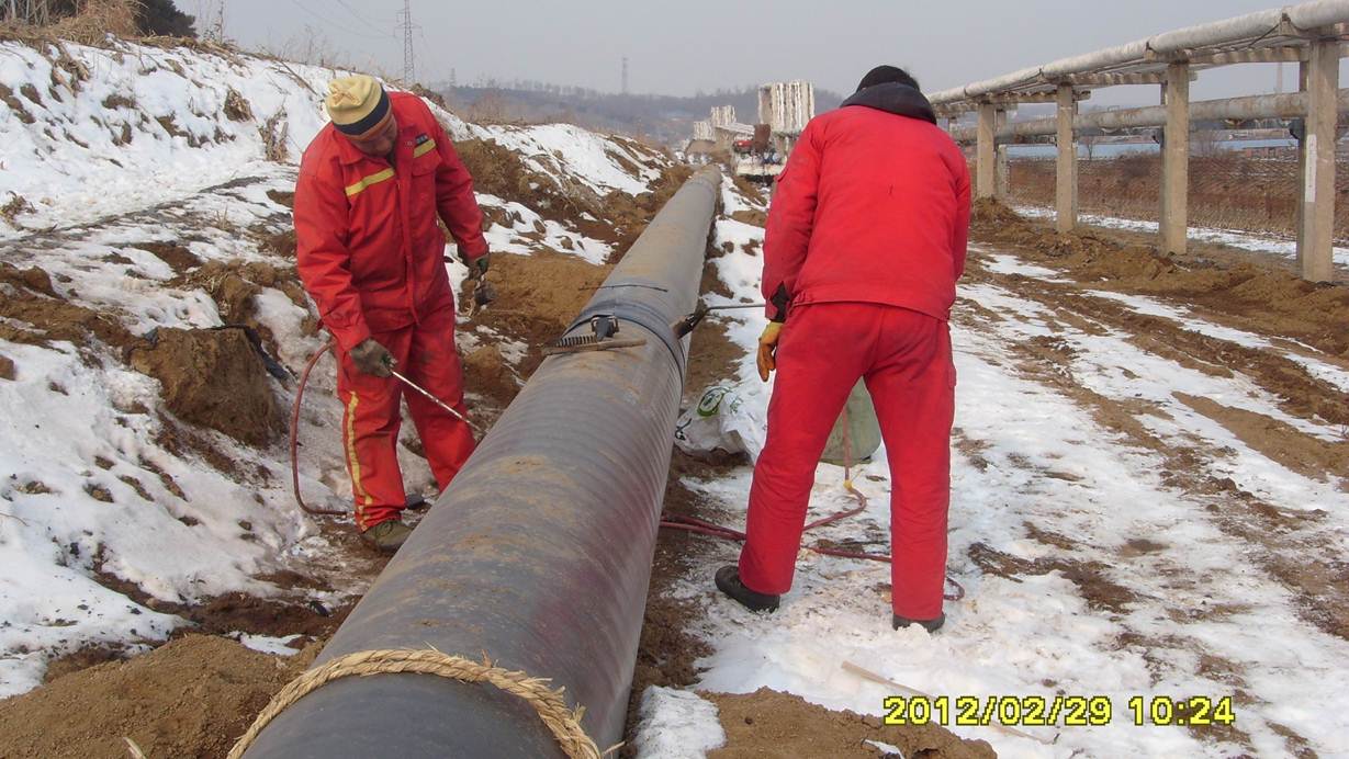 監(jiān)理人員檢查管線補口質量