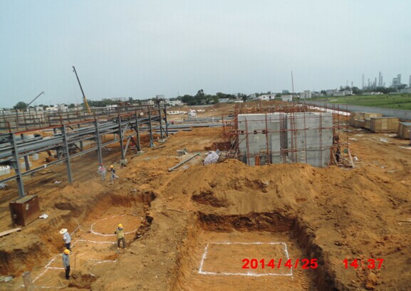 閃蒸罐、含酸氣堿洗塔基礎(chǔ)開(kāi)挖及壓縮機(jī)基礎(chǔ)澆筑完畢